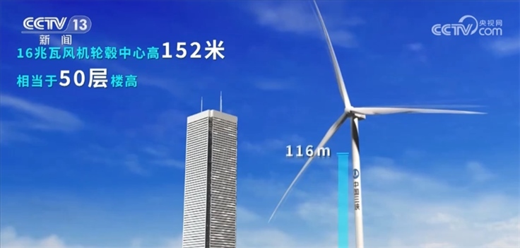 剛才我們看到的葉片只是風(fēng)電機(jī)組的一部分,那么這臺(tái)16兆瓦超大容量海上風(fēng)電機(jī)組整體有多大?它的發(fā)電能力如何?我們一起通過(guò)一組數(shù)字更直觀地了解它。