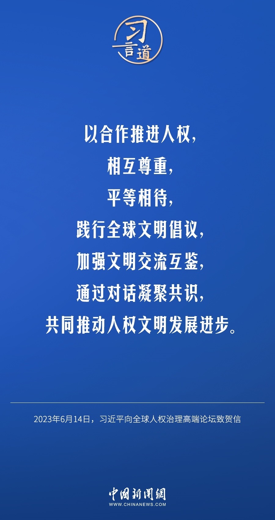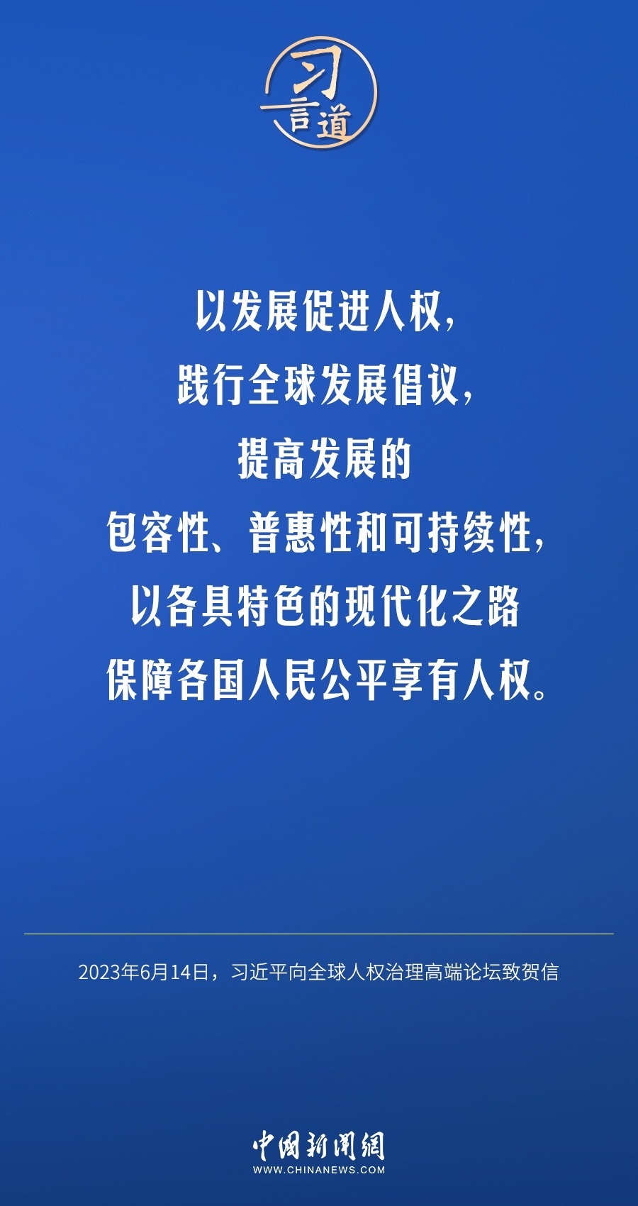 6月14日,國家主席習(xí)近平向全球人權(quán)治理高端論壇致賀信。他指出——