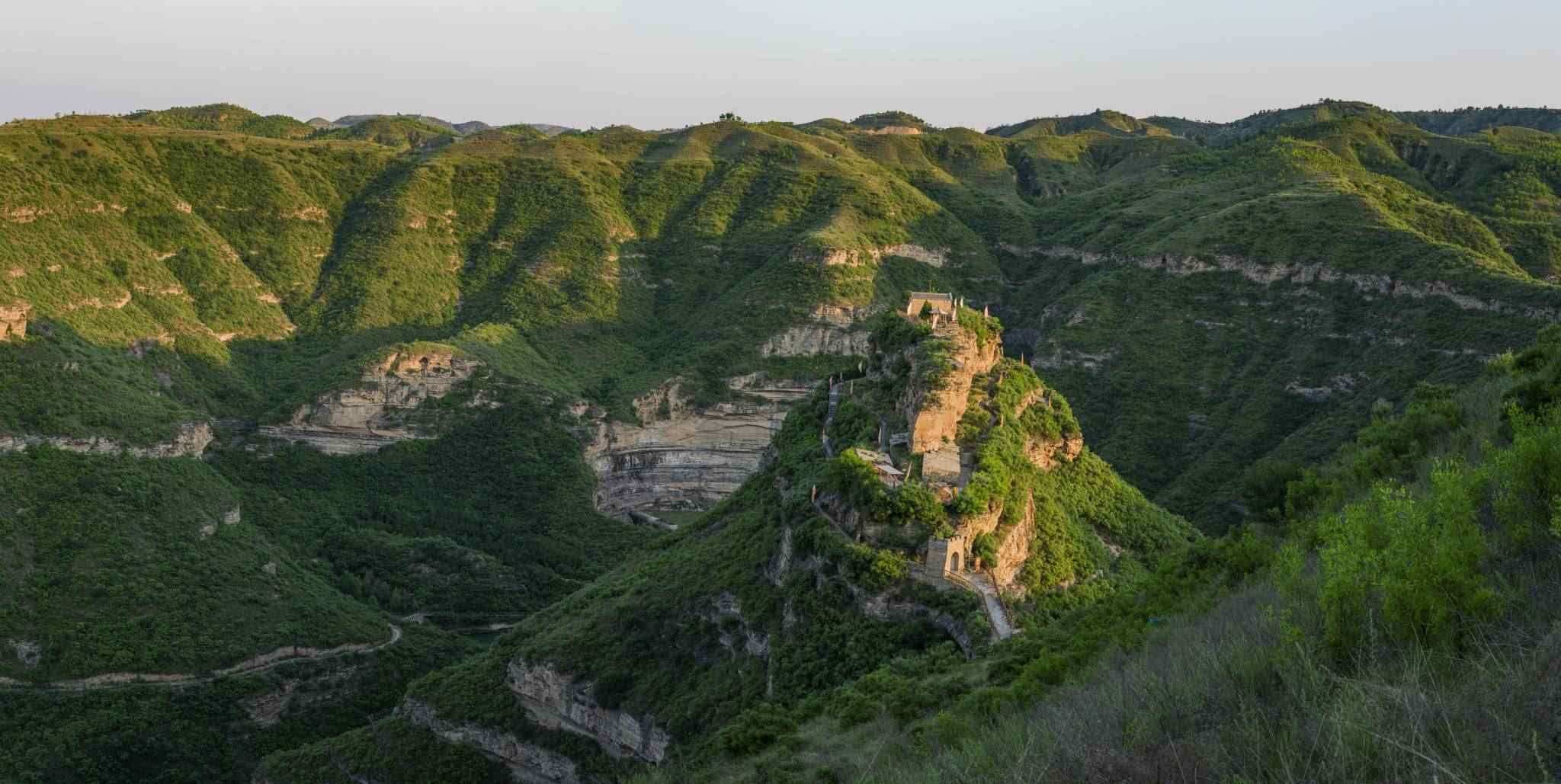 2023年6月14日,陜西省延安市,延川縣乾坤灣鎮(zhèn),晨曦映照會峰寨。視覺中國
