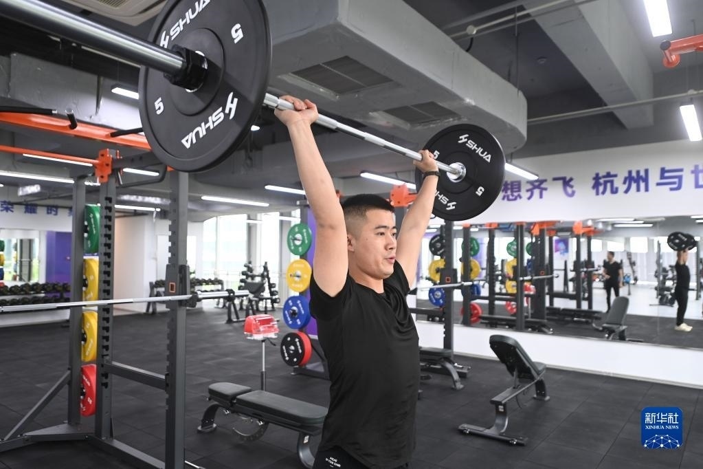 6月16日,杭州亞運(yùn)村健身中心健身教練在綜合器械區(qū)展示。據(jù)了解,健身中心集合了營(yíng)養(yǎng)管理、體能康復(fù)、疲勞恢復(fù)、運(yùn)動(dòng)心理等各領(lǐng)域的專業(yè)教練,將根據(jù)運(yùn)動(dòng)員實(shí)際情況,為運(yùn)動(dòng)員提供賽事服務(wù)保障。