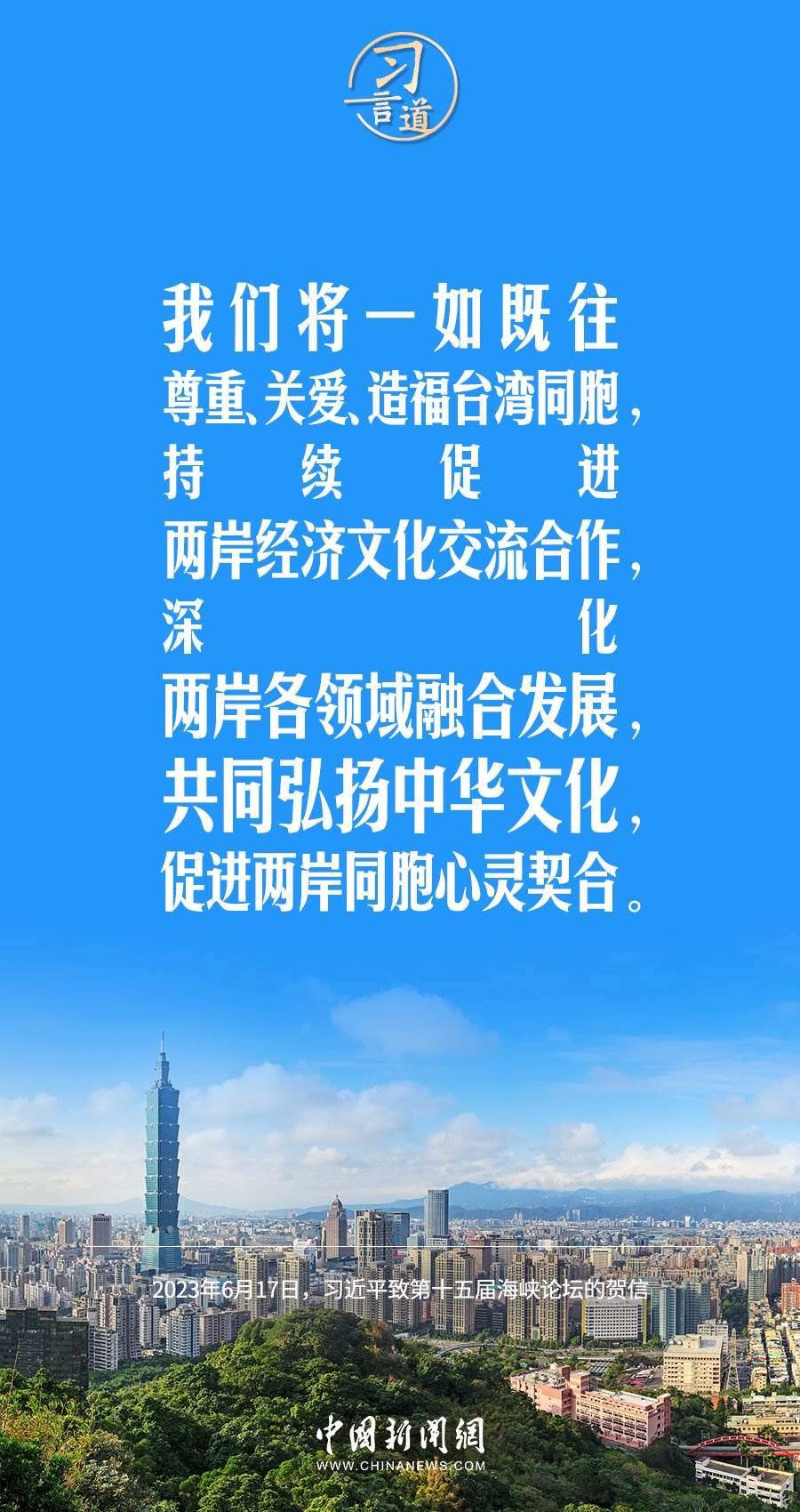 6月17日,中共中央總書記、國家主席習近平向第十五屆海峽論壇致賀信。習近平強調——
