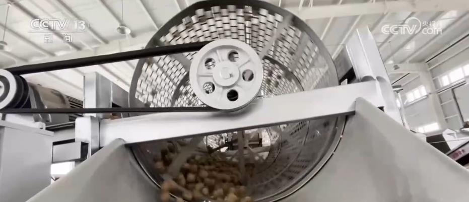從田間地頭集中收購的青皮核桃會被送往加工車間,通過現(xiàn)代化機器設備首先將核桃外層的青皮脫離,此時黃色的果殼就會顯現(xiàn)。然后進行清洗去除掉核桃外殼的雜質,緊接著就是利用烘干設備將核桃烘干,之后再利用分選設備將大小不均的核桃進行篩選分類,最后一步就是將分類好的成品核桃打包裝箱銷往各大市場。