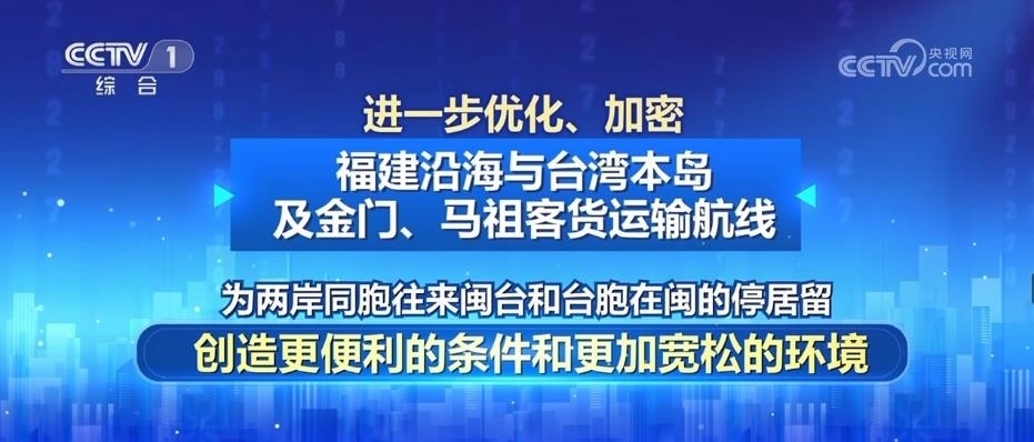 二是進(jìn)一步優(yōu)化、加密福建沿海與臺(tái)灣本島及金門、馬祖客貨運(yùn)輸航線,為兩岸同胞往來閩臺(tái)和臺(tái)胞在閩的停居留,創(chuàng)造更便利的條件和更加寬松的環(huán)境。