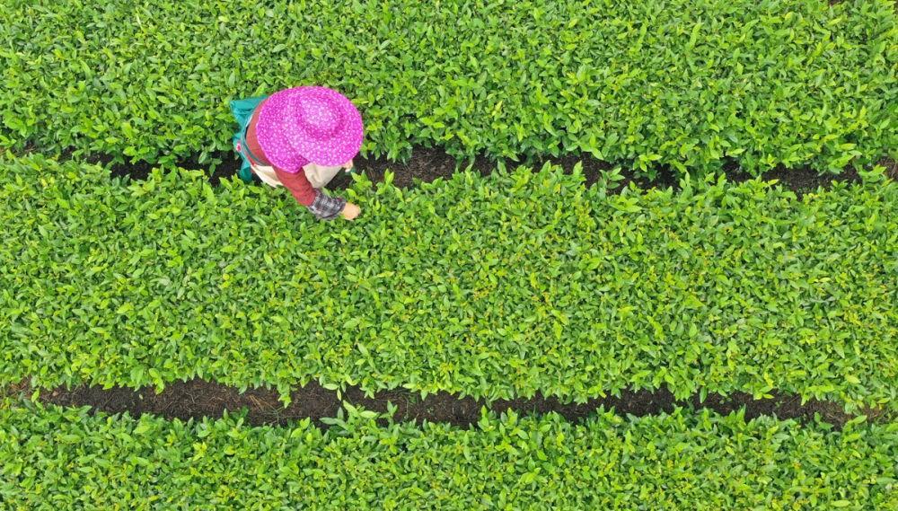 ↑2023年9月6日,浙江省臺州市仙居縣上張鄉(xiāng)方山村,茶農(nóng)在采摘秋茶。CICPHOTO/王華斌 攝