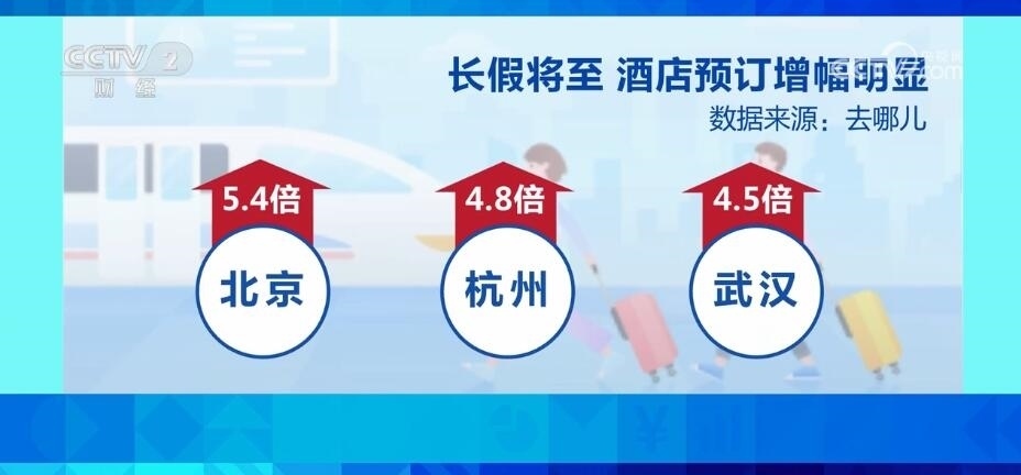 旅游預(yù)訂平臺數(shù)據(jù)顯示:截至9月15日,國內(nèi)熱門酒店預(yù)訂量同比2019年增長514%。其中,北京、杭州、武漢、上海、重慶、成都、長沙、西安、南京、廣州,“十一”假期的酒店預(yù)訂量同比2019年增長超3倍。其中,北京增幅達5.4倍,杭州、武漢增幅分別達到4.8倍、4.5倍。