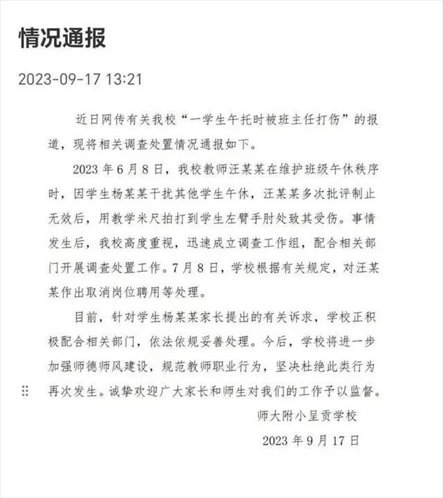 ·昆明一小學(xué)通報(bào)“學(xué)生午托時(shí)被班主任打傷”:涉事老師取消崗位聘用。