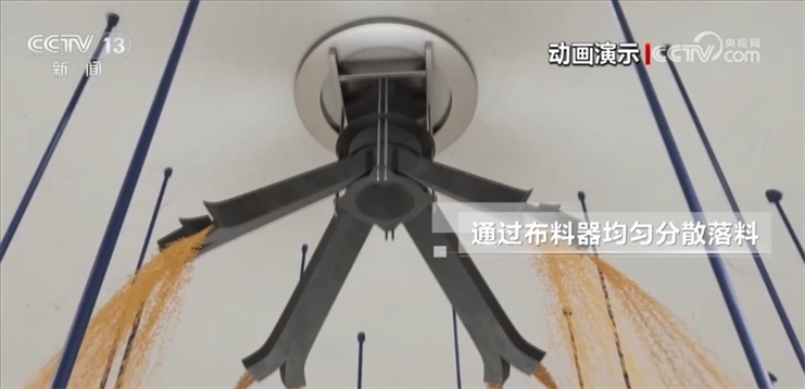 倉內(nèi)頂部安裝的布料器能讓大豆入倉時均勻、分散下落,減少糧食的自動分級和雜質(zhì)的聚集,更有利于后續(xù)的安全保管。