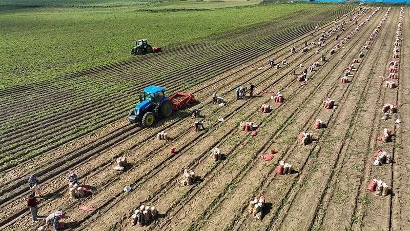△9月3日,河北省圍場(chǎng)滿族蒙古族自治縣御道口鎮(zhèn)御道口村一家馬鈴薯種植合作社社員在收獲馬鈴薯。