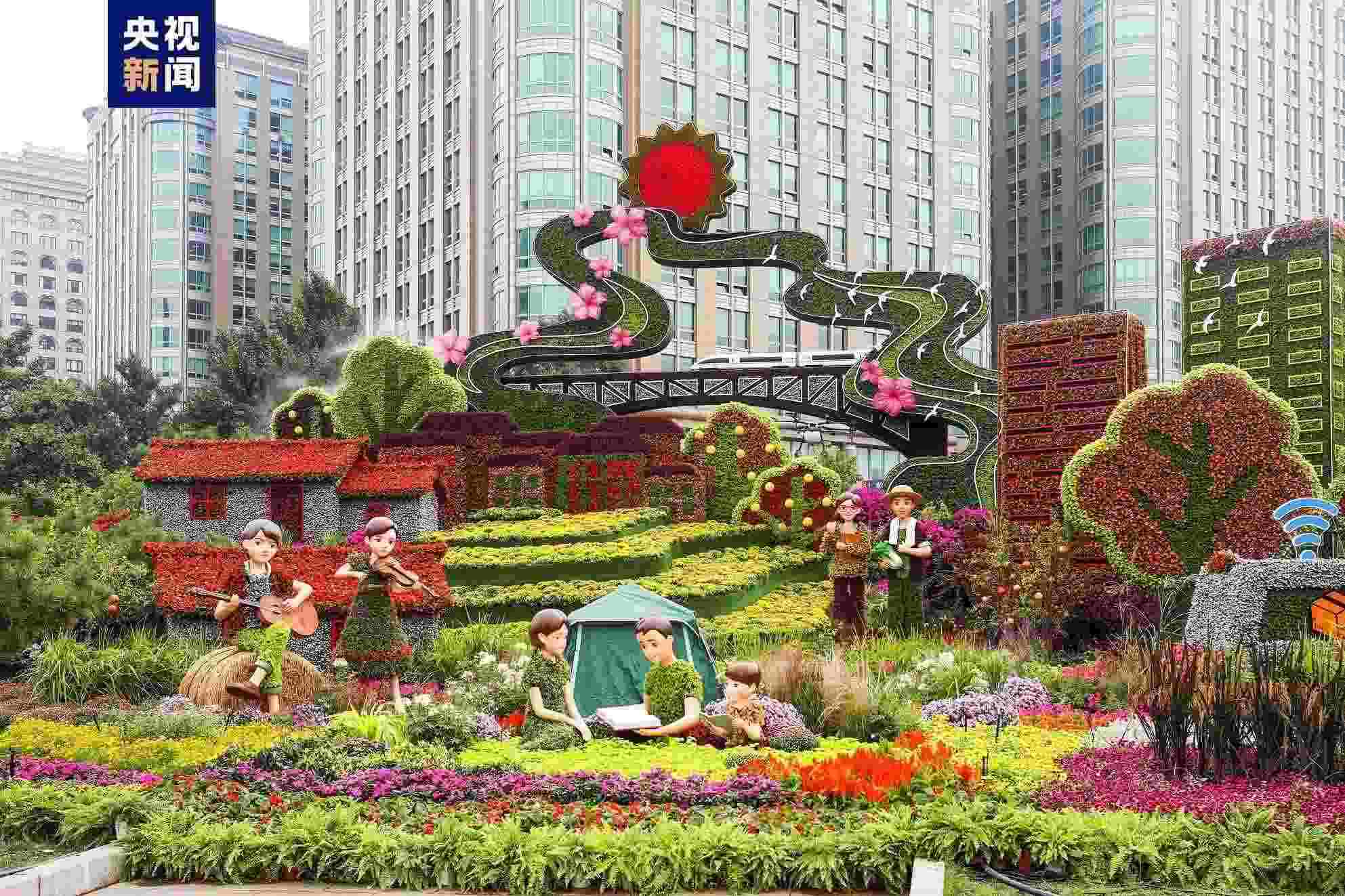 今年廣場花籃首次裝入象征豐收的五谷元素(水稻、小麥、小米、黃米、大豆),花籃內(nèi)的花卉等部件均使用阻燃、抗風材料進行3D打印,有效保障安全性、穩(wěn)定性和觀賞性。廣場兩側綠地布置5050平方米吉祥如意花帶圖案,花球18個。長安街建國門至復興門之間布置10組不同主題的立體花壇,50多個國內(nèi)自主知識產(chǎn)權新品種、國外引進新品種和鄉(xiāng)土植物在長安街花壇中首次應用,描繪出全面推進中華民族偉大復興的宏偉藍圖和人民群眾不斷提升的獲得感、幸福感的美好畫面。長安街、三里河路、阜成路、機場路四條重點道路布置容器花卉100組、地栽花卉2萬余平方米、花拱花球40余個,為市民游客營造花團錦簇的節(jié)日氛圍。