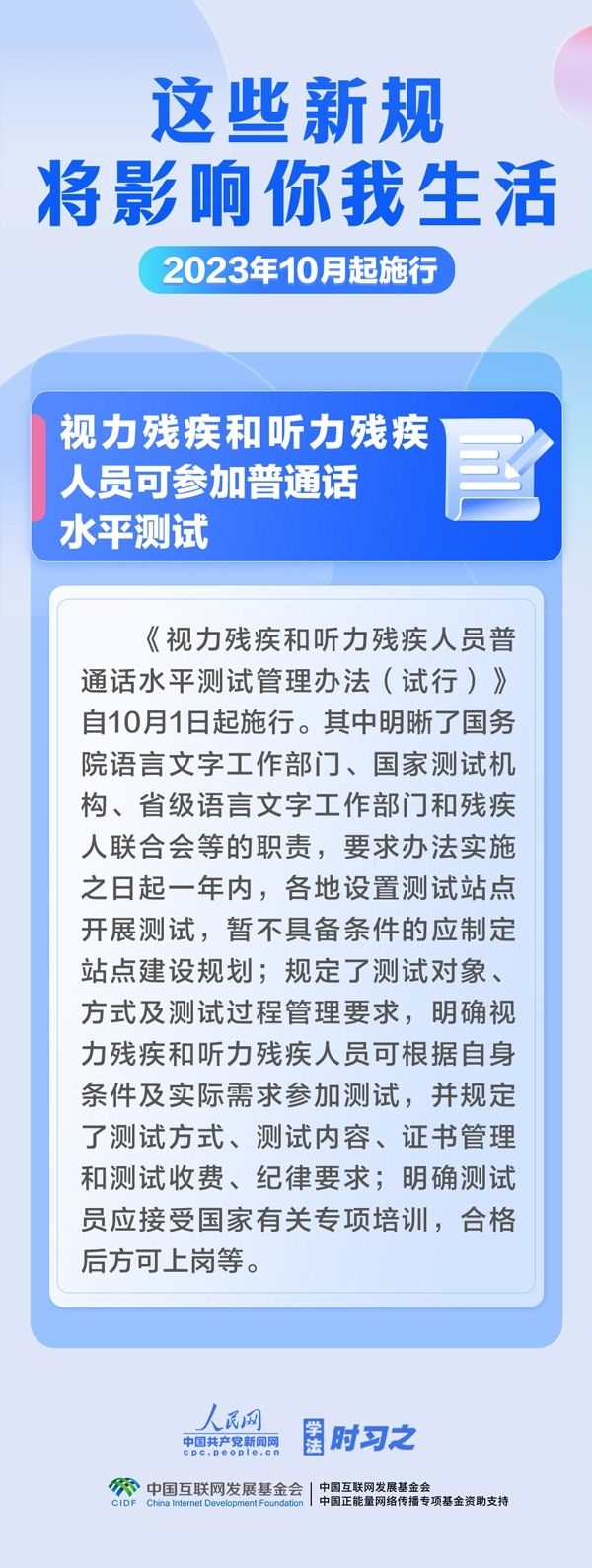 預(yù)防和制止假冒國(guó)企央企等違法行為;加強(qiáng)校外培訓(xùn)監(jiān)管;視力殘疾和聽(tīng)力殘疾人員可參加普通話(huà)水平測(cè)試……10月,這些新規(guī)施行,將影響你我生活。