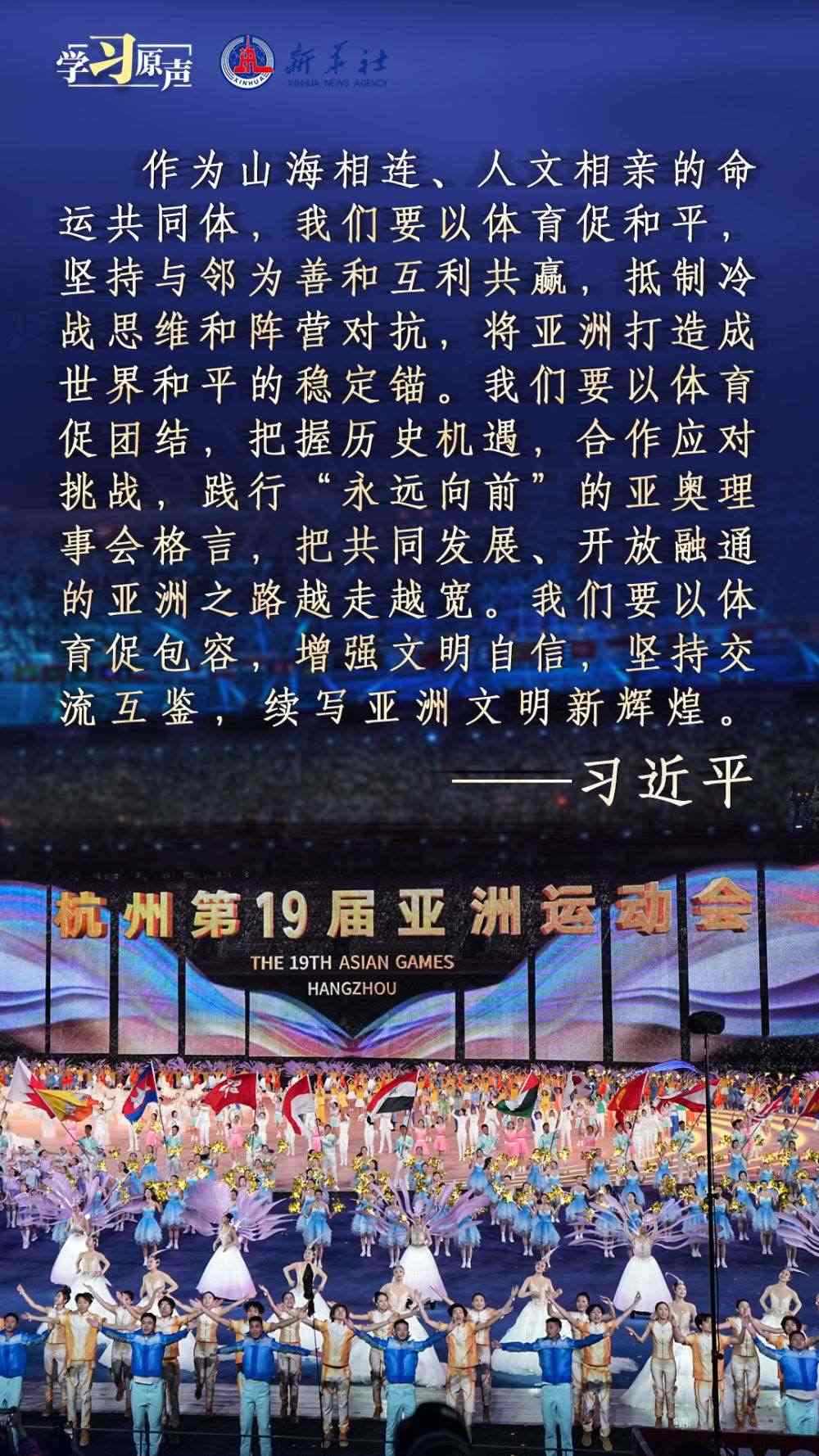 秋分時(shí)節(jié),舉世矚目的杭州第十九屆亞洲運(yùn)動(dòng)會(huì)隆重開幕。“亞洲運(yùn)動(dòng)會(huì)承載著亞洲人民對(duì)和平、團(tuán)結(jié)、包容的美好向往?!绷?xí)近平主席在杭州第十九屆亞洲運(yùn)動(dòng)會(huì)開幕式歡迎宴會(huì)上的致辭,傳遞著熱情友好的情誼,宣示了新時(shí)代中國(guó)推動(dòng)亞洲大家庭團(tuán)結(jié)合作的堅(jiān)定決心,為促進(jìn)亞洲和國(guó)際奧林匹克運(yùn)動(dòng)發(fā)展、共建亞洲命運(yùn)共同體注入強(qiáng)大信心與力量。