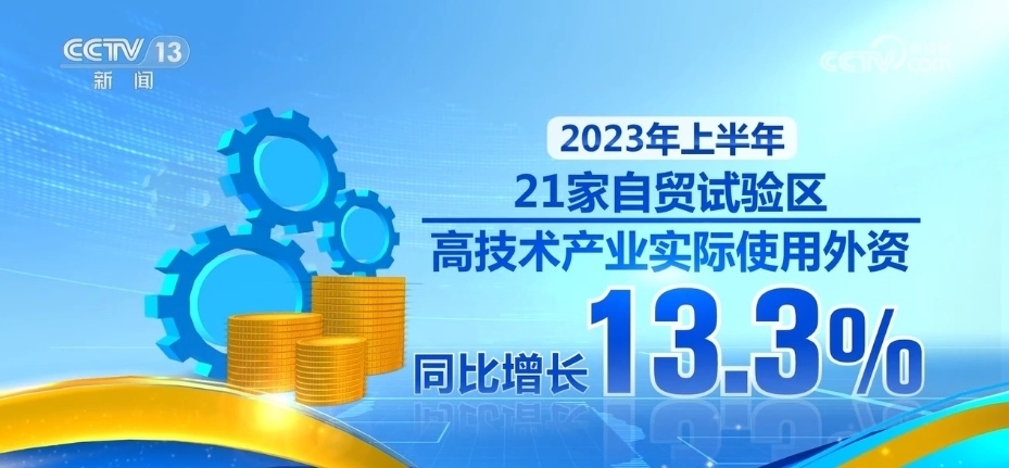 數(shù)據(jù)顯示,2022年,21個(gè)自貿(mào)試驗(yàn)區(qū)以只占全國(guó)不到4‰的國(guó)土面積,實(shí)現(xiàn)了占全國(guó)18.41%的外商投資和17.9%的進(jìn)出口。2023年上半年,21家自貿(mào)試驗(yàn)區(qū)高技術(shù)產(chǎn)業(yè)實(shí)際使用外資同比增長(zhǎng)13.3%。