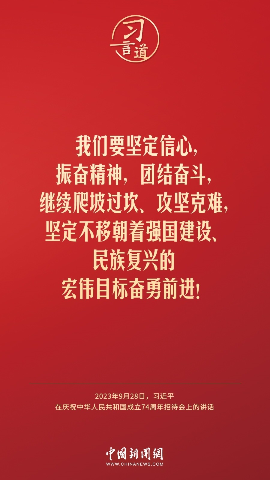 慶祝中華人民共和國成立74周年招待會(huì)28日晚在人民大會(huì)堂舉行。中共中央總書記、國家主席、中央軍委主席習(xí)近平出席招待會(huì)并發(fā)表重要講話。他強(qiáng)調(diào)——