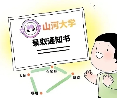 網(wǎng)友隨后設(shè)計(jì)出“山河大學(xué)”的“官網(wǎng)、?;铡⑿?nèi)建筑、錄取通知書”等,喊出“三年超清華,五年趕北大”……該話題引發(fā)大量網(wǎng)友熱議,吐槽“建校當(dāng)天該有的都有了,就是沒有學(xué)校”。