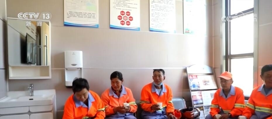 中午12時(shí),東營市的最高氣溫升至38℃左右。在蒙山路一處專門為環(huán)衛(wèi)工人“量身打造”的休息室,環(huán)衛(wèi)工人們可以隨時(shí)到這里避暑納涼,休息室里有空調(diào)、冰箱、飲水機(jī)等各種設(shè)施。