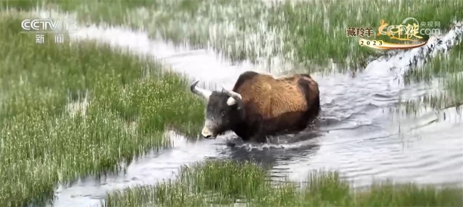 記者甚至拍到了成群的野牦牛在水中游嬉過河的畫面。高原的夏日里,趟過清涼的河水,想必也算是牛生的一樁美事。牛氣哄哄的野牦牛,此刻似乎多了幾分愜意,少了幾分“高原霸主”的威嚴。