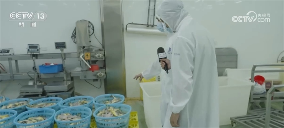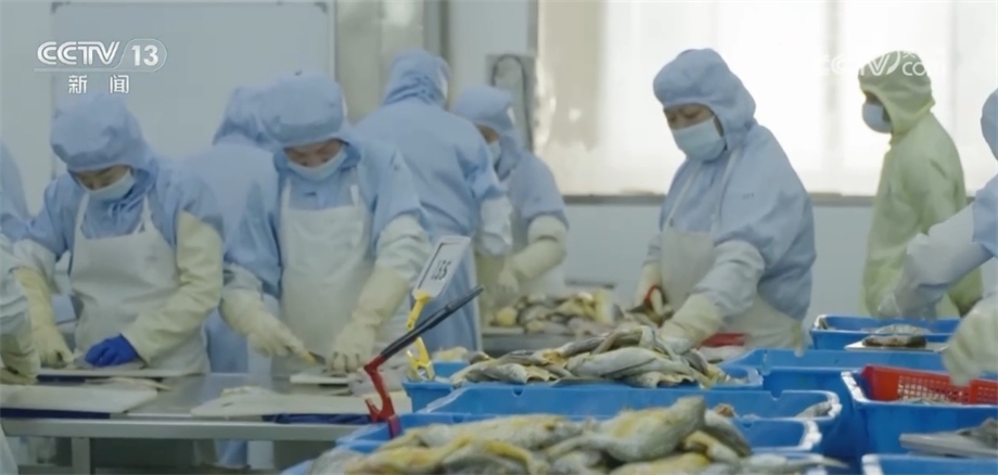 總臺央視記者 馬寧:我現(xiàn)在來到了寧德市當?shù)匾患冶容^大的黃魚生產企業(yè),大家可以看到我身后就是工人們正在把已經腌制好的黃魚經過分撿、稱重、打包、送進冷庫,這些經過處理的大黃魚就可以通過冷鏈物流送到千家萬戶的餐桌上。