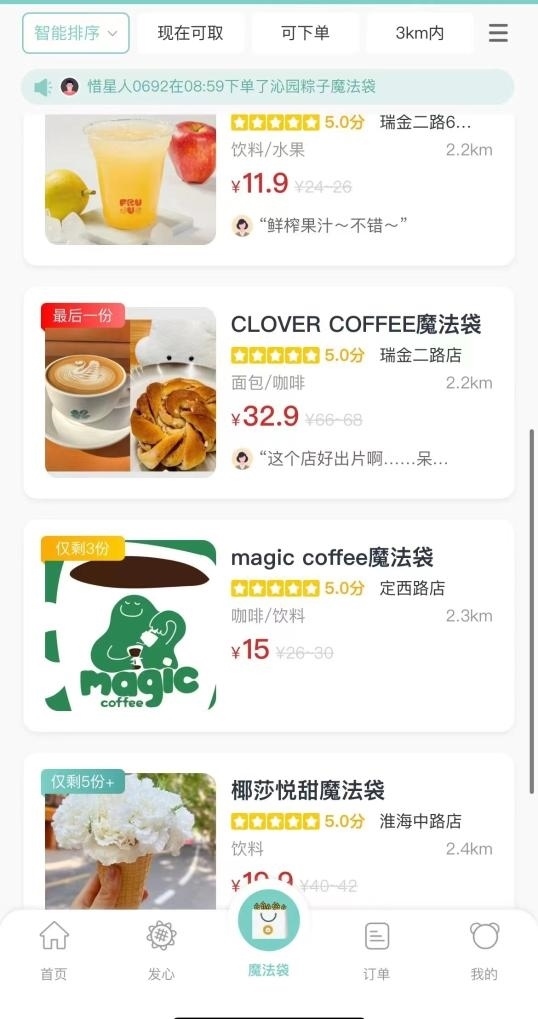 記者在上海登錄一個(gè)“盲盒”小程序,看到所在地周邊的部分商戶銷售一批名為“魔法袋”的產(chǎn)品,已經(jīng)吸引多個(gè)餐飲品牌加入。平均售價(jià)只有十幾元的“食物盲盒”,包含了多個(gè)烘焙產(chǎn)品。記者隨機(jī)選購(gòu)了一款“魔法袋”,到店取貨后看到,售價(jià)11.9元的“魔法袋”里有4個(gè)蛋撻、2個(gè)肉松蛋糕。如果按照原價(jià)購(gòu)買,這些東西應(yīng)該需要20多元。