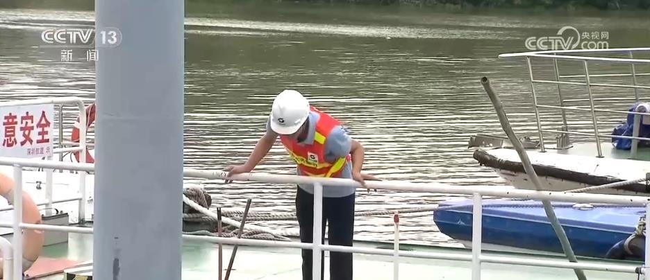 在深圳河皇崗碼頭段,水務(wù)部門的工作人員正在進(jìn)行臺(tái)風(fēng)前的巡查工作。臺(tái)風(fēng)來(lái)臨前,河流船只必須全部回港避險(xiǎn)并進(jìn)行加固處理,沿河的各項(xiàng)工程必須停工。