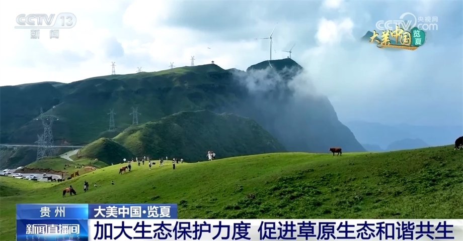 跟隨鏡頭,我們來到貴州六盤水盤州市的烏蒙大草原。眼下,正值盛夏的烏蒙大草原水草豐茂、碧綠如茵、牛羊成群,從空中俯瞰,縹緲的云霧將草原裝扮得十分夢幻。烏蒙大草原最高海拔2857米。因為地處高海拔地區(qū),這里的氣候適宜,吸引了許多游客來到這里避暑旅游。近年來,當(dāng)?shù)丶哟髮Υ迕窈陀慰偷男麄饕龑?dǎo)力度,并采取措施限制過度放牧,嚴(yán)厲打擊采挖野生高原矮杜鵑和駕車碾壓草地等行為,保護草原生態(tài)平衡,維護生物多樣性,讓烏蒙大草原生態(tài)持續(xù)向好,實現(xiàn)人與自然和諧共生。