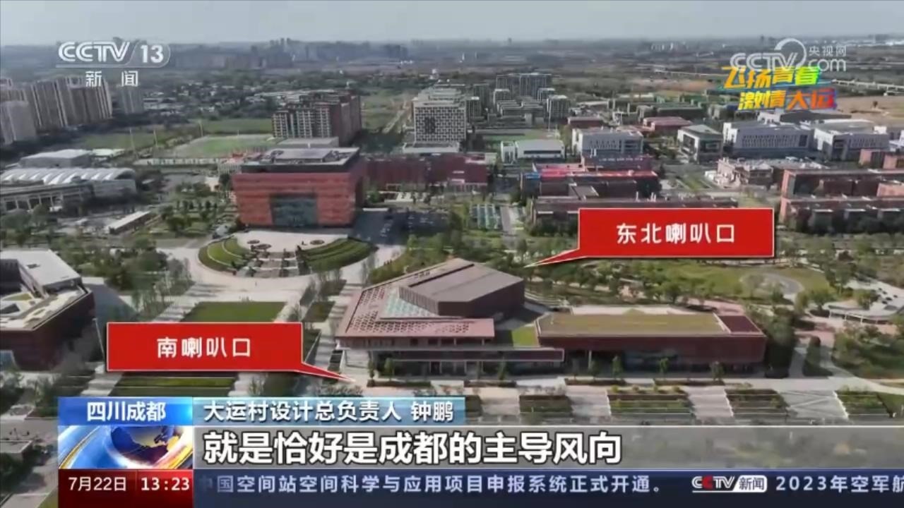 設(shè)計(jì)團(tuán)隊(duì)結(jié)合地形,設(shè)計(jì)了“兩頭大、中間小”的喇叭口,一邊朝東北,另一邊朝南,順著成都的主導(dǎo)風(fēng)向,把空氣接收進(jìn)來,在中間部分的收束區(qū)域,氣流被加速,就形成了“涼風(fēng)陣陣”。在物理學(xué)上,這叫文丘里效應(yīng)。