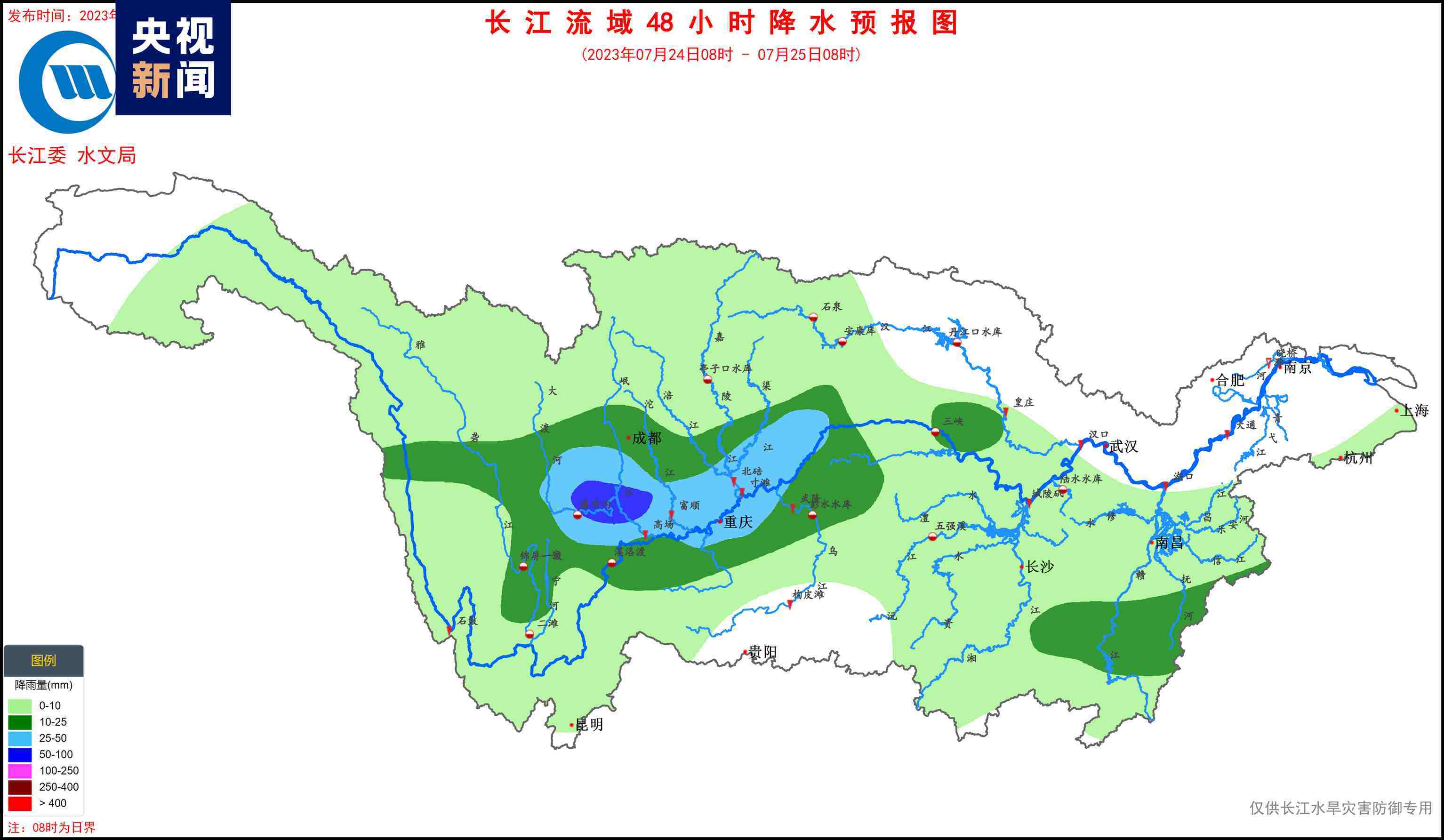 為切實(shí)做好洪水防御工作,長(zhǎng)江防總、長(zhǎng)江委于7月23日分別發(fā)布汛情通報(bào),要求四川、重慶、貴州等地務(wù)必高度警惕。