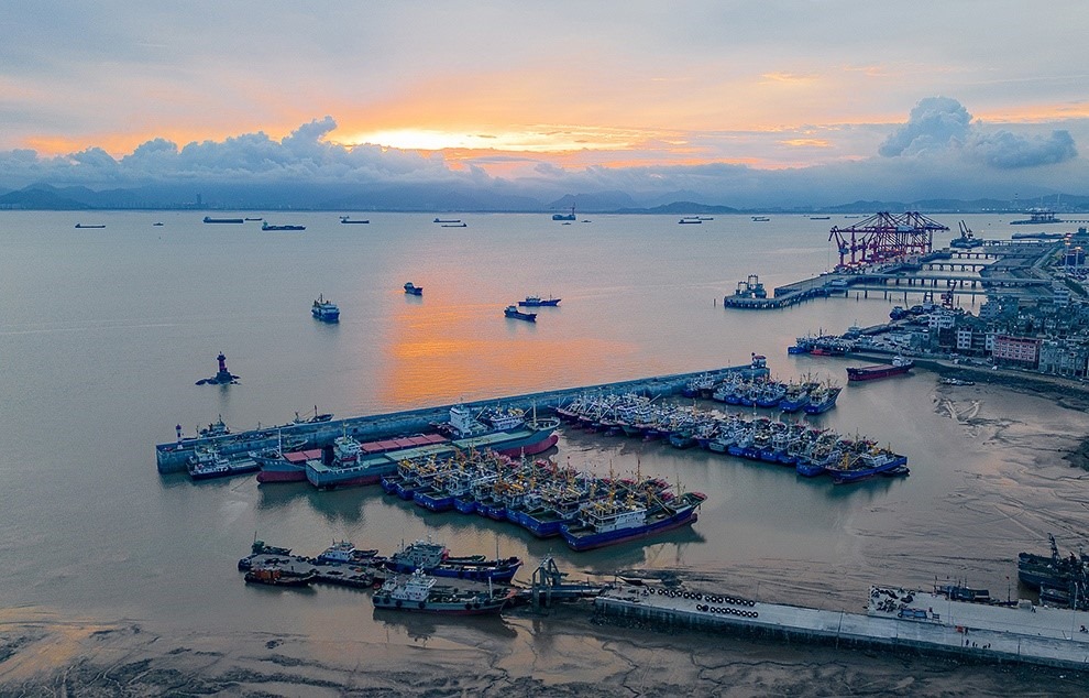 △2023年7月24日,避風(fēng)漁船??吭谡憬_州的漁港。