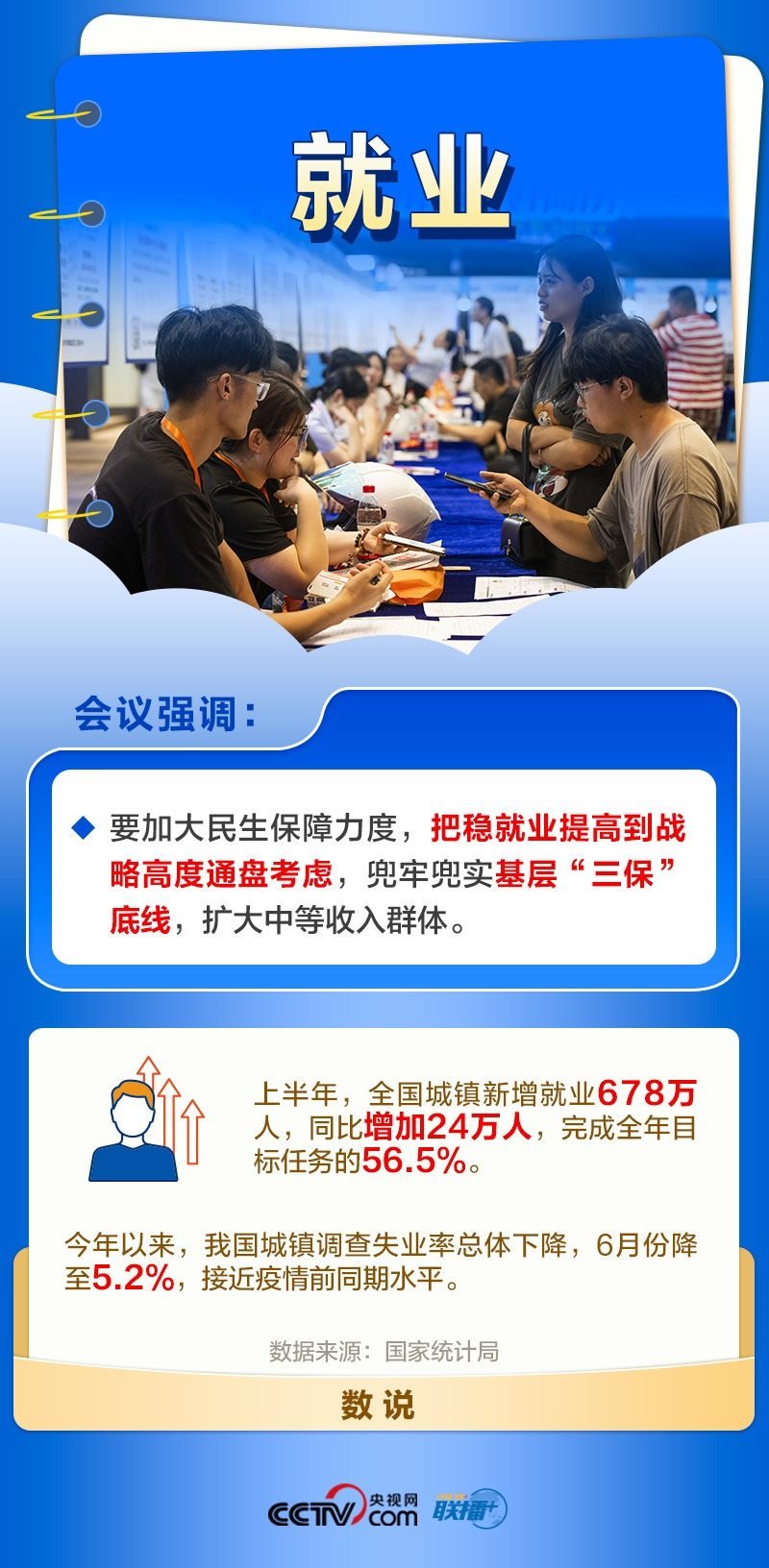 就業(yè)是最大的民生,也是最基本的民生。黨中央一直高度關(guān)注就業(yè)形勢(shì)。今年以來(lái),各地區(qū)各部門(mén)多措并舉穩(wěn)存量、擴(kuò)增量、提質(zhì)量、兜底線,落實(shí)落細(xì)就業(yè)優(yōu)先政策,完善公共就業(yè)服務(wù)。