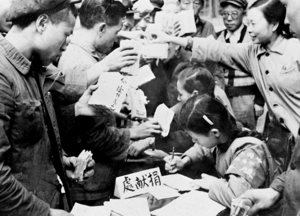 ——知識(shí)分子為支援前線的愛國(guó)事業(yè)鼓與呼,醫(yī)務(wù)工作者組織大批醫(yī)療隊(duì)奔赴前線,“為最可愛的人購買飛機(jī)大炮”的捐款熱潮席卷了每一個(gè)社會(huì)層面、每一個(gè)社會(huì)角落……