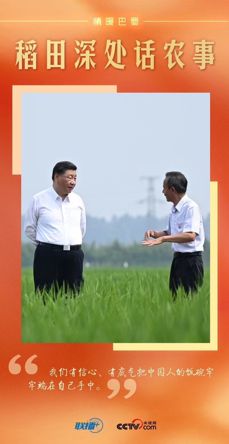 遠(yuǎn)眺廣袤田野,總書記思慮深遠(yuǎn):“民以食為天。推進(jìn)農(nóng)業(yè)現(xiàn)代化,既要靠我們中國的農(nóng)業(yè)專家,也要靠我們中國的農(nóng)民,我們有信心、有底氣實(shí)現(xiàn)糧食安全的目標(biāo)。四川要把農(nóng)業(yè)搞好,把糧食生產(chǎn)抓好。”
