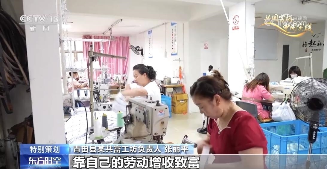 浙江青田縣某共富工坊負責人 張麗平:做服裝來料加工多年,就想把自己的技術帶回來,讓我們周邊的婦女靠自己的勞動增收致富。