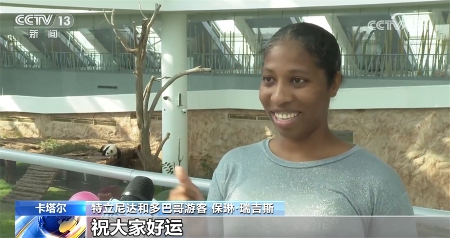 在卡塔爾的大熊貓館,很多前來(lái)參觀的游客得知大運(yùn)會(huì)吉祥物“蓉寶”的原型也是一只熊貓,他們紛紛預(yù)祝大運(yùn)會(huì)圓滿(mǎn)成功,祝福運(yùn)動(dòng)員們享受比賽,取得好成績(jī)。