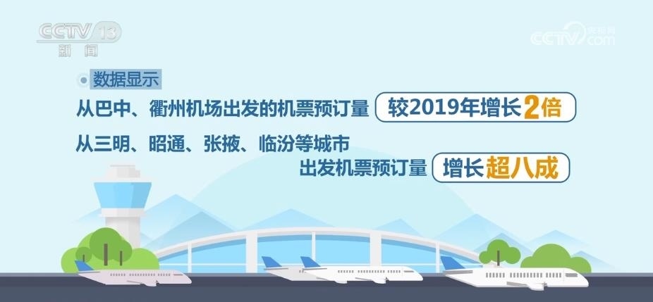 2023年暑運期間,三四線航空市場開始顯現(xiàn)出熱度。數(shù)據(jù)顯示,從巴中、衢州機場出發(fā)的機票預(yù)訂量較2019年增長兩倍。從三明、昭通、張掖、臨汾等城市出發(fā)機票預(yù)訂量增長超八成。