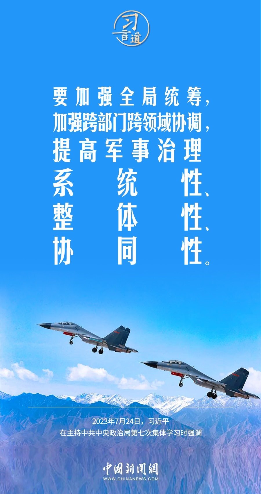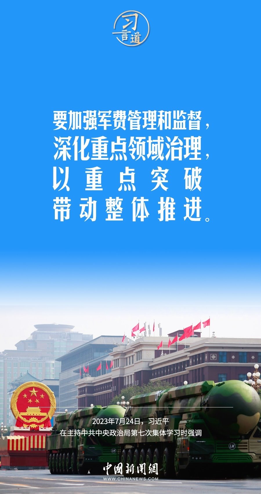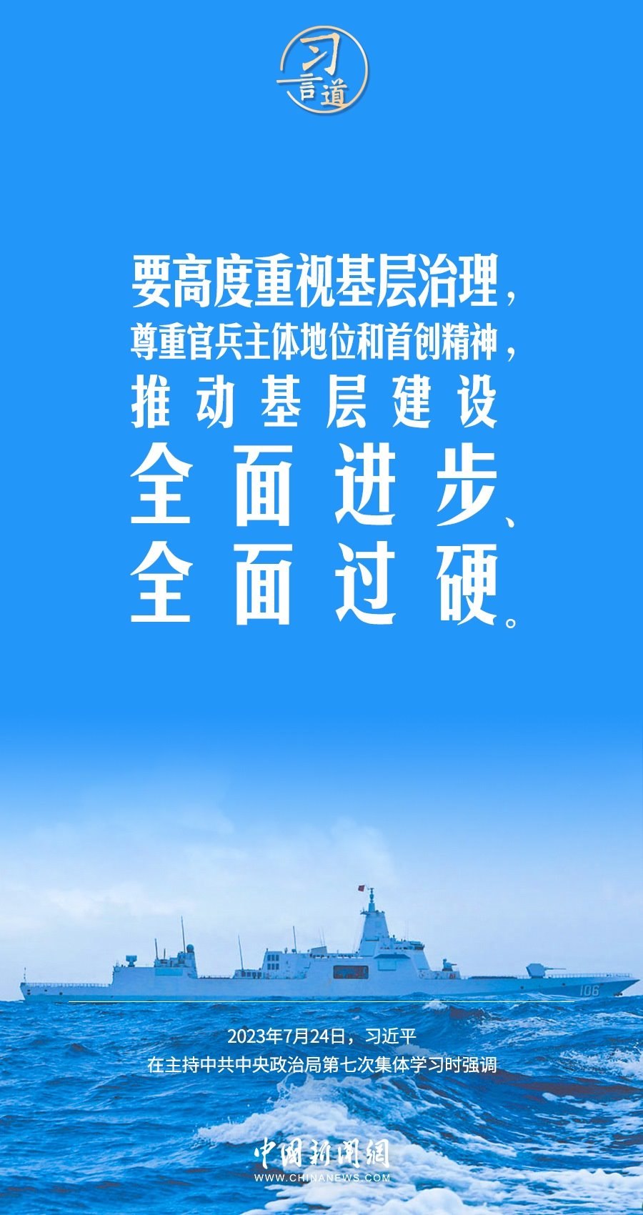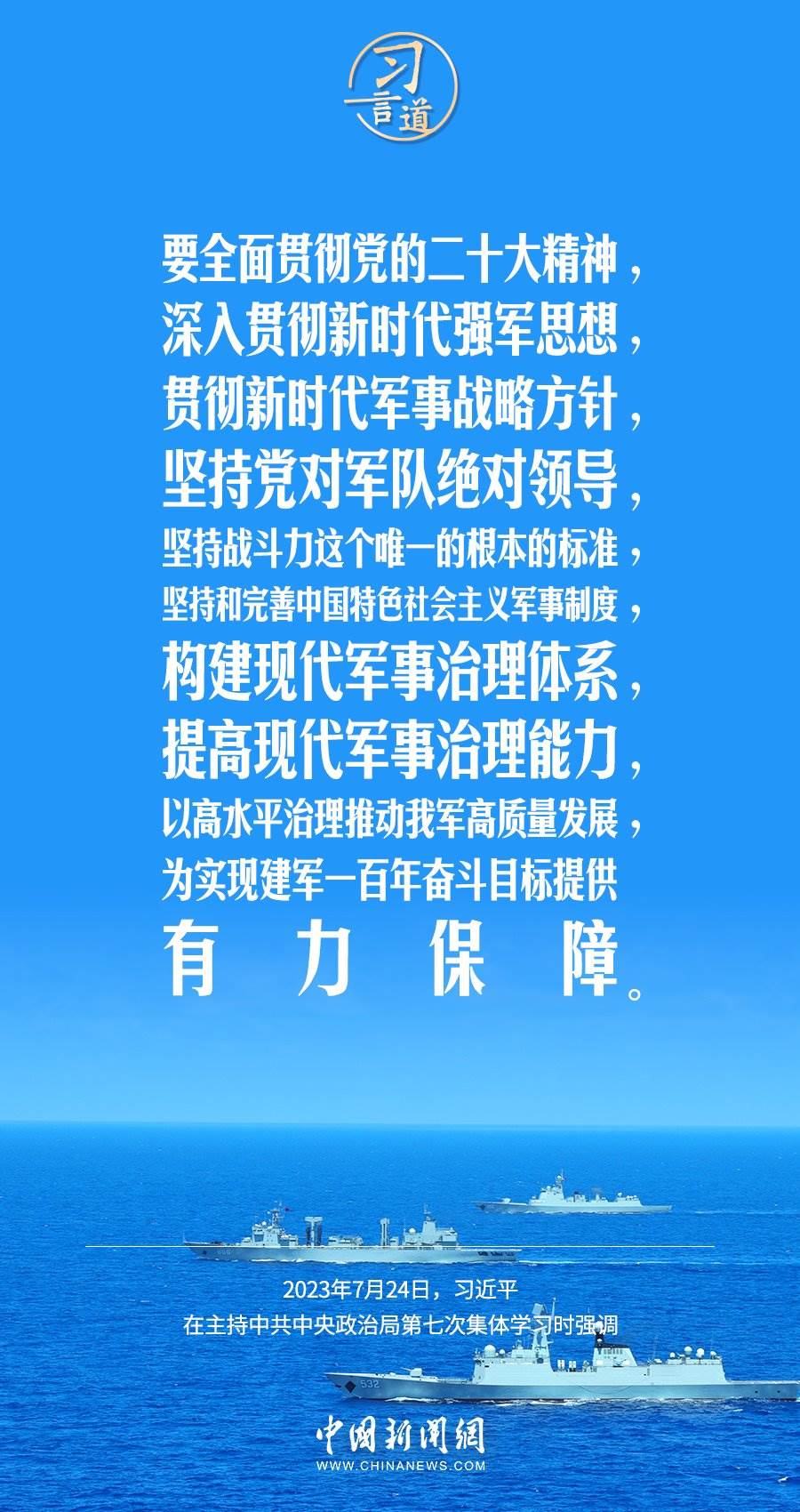 八一建軍節(jié)來臨之際,中共中央政治局7月24日下午就全面加強(qiáng)軍事治理進(jìn)行第七次集體學(xué)習(xí)。中共中央總書記習(xí)近平主持學(xué)習(xí),他強(qiáng)調(diào)——