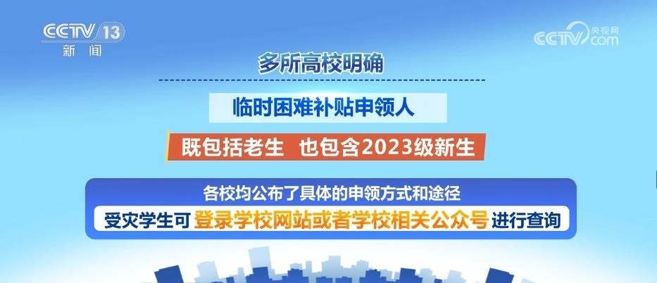 多所高校明確,臨時困難補貼申領(lǐng)人既包括老生,也包含2023級新生。各校均公布了具體的申領(lǐng)方式和途徑,受災(zāi)學(xué)生可登錄學(xué)校網(wǎng)站或者學(xué)校相關(guān)公眾號進行查詢。其中,南開大學(xué)、北京航空航天大學(xué)等高校公布了資助熱線。上海交通大學(xué)、西北工業(yè)大學(xué)等高校提出,需要幫助的學(xué)生可第一時間聯(lián)系輔導(dǎo)員。華東師范大學(xué)提出需要幫助的同學(xué)可在學(xué)生資助管理中心網(wǎng)站后臺申請臨時性困難補助。