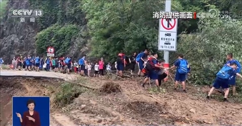 8月2日上午,現(xiàn)場(chǎng)總指揮決定護(hù)送自愿離開(kāi)的被困群眾進(jìn)行撤離。在撤離的隊(duì)伍中,有38名來(lái)自新疆參加北京游學(xué)的孩子,他們最小的6歲,平均年齡也只有8歲。為了保障轉(zhuǎn)移時(shí)的安全,撤離線路選擇了相對(duì)安全的盤(pán)山公路進(jìn)行。途中經(jīng)過(guò)落石塌方險(xiǎn)區(qū)的時(shí)候,消防員們依次排開(kāi),在斷崖旁形成人墻,用身體筑起一條防線。遇到水流,消防員們把孩子們抱著傳遞到安全位置再繼續(xù)前行。