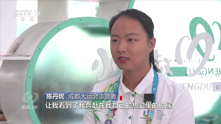 成都大運(yùn)會(huì)志愿者陳丹妮:“我一定要回來(lái),一定要把這件事情做完,而且把這件事情做好。我覺(jué)得成都大運(yùn)會(huì)是我跟成都很深的情感上,包括精神上的一個(gè)聯(lián)結(jié),它已經(jīng)成為我青春記憶中非常重要的一個(gè)環(huán)節(jié),所以我完全沒(méi)有想過(guò)我有一天要放棄它?!?/p>