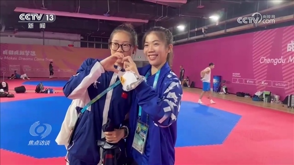 成都大運(yùn)會(huì),是青春的盛會(huì),也是一次友誼的盛會(huì)。來(lái)自世界各國(guó)的大學(xué)生們,一起競(jìng)技,一起生活。他們交流著彼此的運(yùn)動(dòng)技巧,同時(shí)也交流著彼此的文化和觀點(diǎn)。正在中國(guó)地質(zhì)大學(xué)就讀的跆拳道運(yùn)動(dòng)員羅妙溢,在成都大運(yùn)會(huì)中遇到了自己的偶像——東京奧運(yùn)會(huì)跆拳道女子49公斤級(jí)冠軍、泰國(guó)選手班妮巴。在自己不比賽的時(shí)候,羅妙溢會(huì)專(zhuān)門(mén)來(lái)給班妮巴加油。