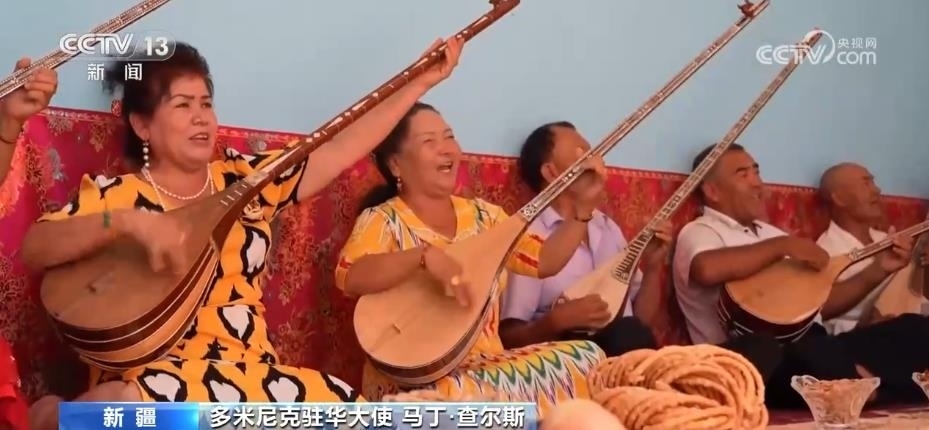 駐華使節(jié)們走進(jìn)喀什古城的街市巷陌,感受當(dāng)?shù)鬲?dú)特的民族文化;在克孜爾千佛洞,領(lǐng)略跨越千年的石窟藝術(shù);來到新疆民間手工樂器制作第一村庫車市新和縣加依村,同當(dāng)?shù)匕傩找黄疠d歌載舞;觀看非遺項(xiàng)目十二木卡姆等一系列活動(dòng),讓使節(jié)們感嘆,新疆少數(shù)民族傳統(tǒng)文化和生活習(xí)俗得到了充分保護(hù)。