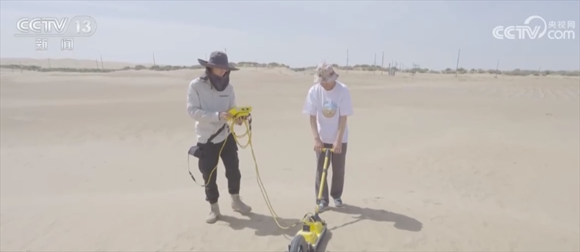 總臺央視記者 任梅梅:這里是吐魯番盆地的荒漠地區(qū),在我身后科考隊員剛剛架設(shè)起了這樣一座自動氣象站,配合空中無人機(jī)和衛(wèi)星遙感等一系列科技手段,可以實現(xiàn)“天空地一體化”監(jiān)測。