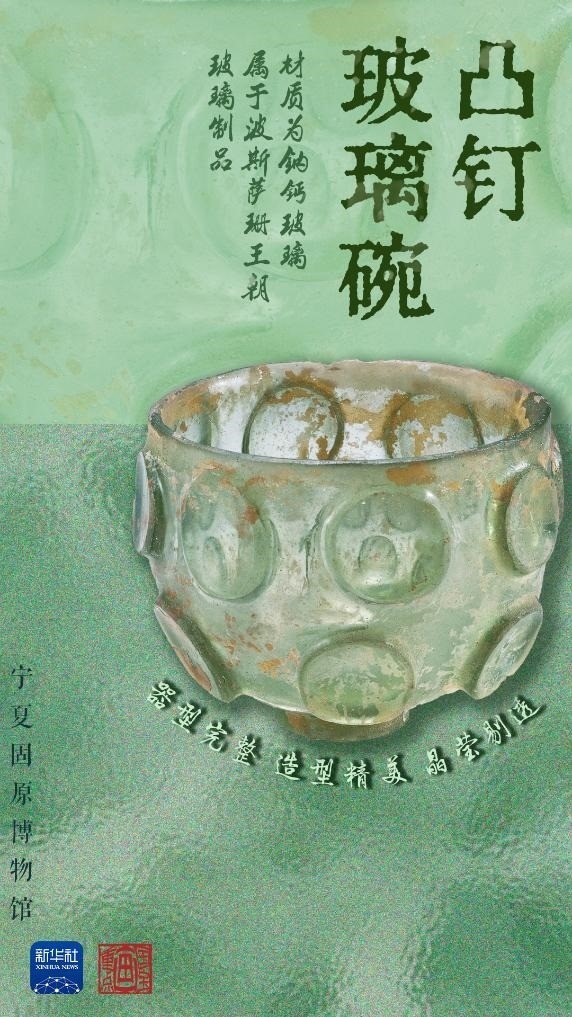 不同于我國古代的鉛鋇玻璃,這件出土于寧夏固原的凸釘玻璃碗的材質(zhì)是鈉鈣玻璃,是經(jīng)絲綢之路遠(yuǎn)道而來的“進(jìn)口貨”——波斯薩珊王朝玻璃制品。據(jù)張強(qiáng)介紹,這只玻璃碗體現(xiàn)了薩珊玻璃器形和紋飾上的獨(dú)特風(fēng)格以及精湛的磨琢工藝,是我國出土的薩珊玻璃器的代表,說明當(dāng)時西方玻璃器經(jīng)絲綢之路輸入中國,也反映出固原作為絲綢之路東段北道的必經(jīng)之地,在當(dāng)時國際商業(yè)貿(mào)易和文化傳播中的重要地位。