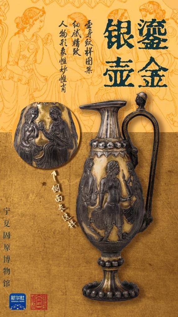 鎏金銀壺有何特殊之處?這件波斯王朝的酒具,是在薩珊時代的巴克特里亞地區(qū)制造而成,距今已有1500年歷史,壺身上的雕刻以連環(huán)畫的形式講述了希臘神話故事里的內(nèi)容?!蚌探疸y壺整體造型融合了波斯薩珊金銀器風(fēng)格、希臘風(fēng)格和巴克特里亞當(dāng)?shù)卦亍!睂幭墓淘┪镳^副館長張強(qiáng)介紹,在現(xiàn)階段出土文物中,鎏金銀壺不僅在中國只此一件,在世界現(xiàn)存的薩珊金銀器中亦屬罕見。