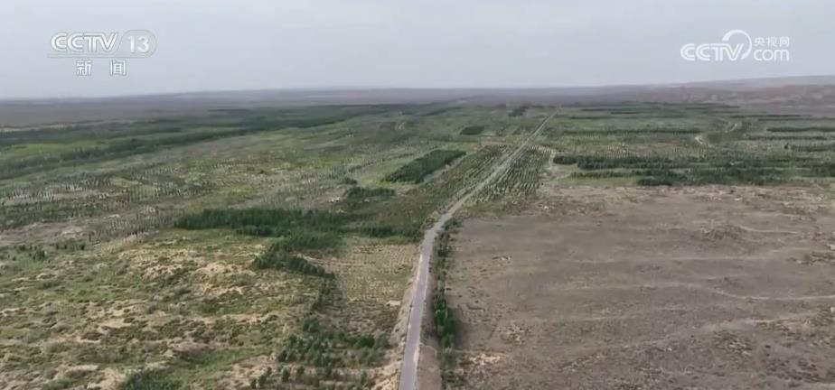 經(jīng)過70年的努力,人們?cè)诿珵跛厣车剡吘壷鹆艘坏罇|西寬30公里、南北長61公里的綠色屏障,創(chuàng)造了世界治沙史上的奇跡。