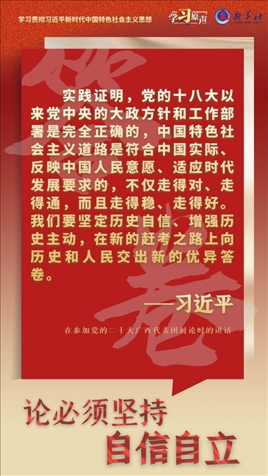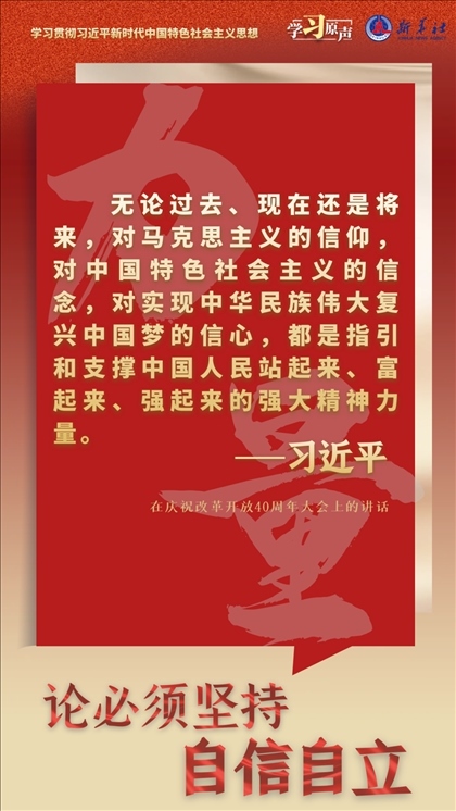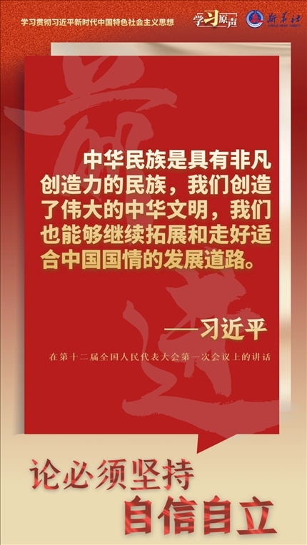 中國(guó)人民和中華民族從近代以后的深重苦難走向偉大復(fù)興的光明前景,從來就沒有教科書,更沒有現(xiàn)成答案。黨的百年奮斗成功道路是黨領(lǐng)導(dǎo)人民獨(dú)立自主探索開辟出來的,馬克思主義的中國(guó)篇章是中國(guó)共產(chǎn)黨人依靠自身力量實(shí)踐出來的,貫穿其中的一個(gè)基本點(diǎn)就是中國(guó)的問題必須從中國(guó)基本國(guó)情出發(fā),由中國(guó)人自己來解答。我們要堅(jiān)持對(duì)馬克思主義的堅(jiān)定信仰、對(duì)中國(guó)特色社會(huì)主義的堅(jiān)定信念,堅(jiān)定道路自信、理論自信、制度自信、文化自信,以更加積極的歷史擔(dān)當(dāng)和創(chuàng)造精神為發(fā)展馬克思主義作出新的貢獻(xiàn),既不能刻舟求劍、封閉僵化,也不能照抄照搬、食洋不化。