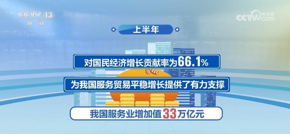 2023年以來,國民經(jīng)濟(jì)持續(xù)穩(wěn)定恢復(fù),服務(wù)業(yè)保持較快增長。上半年,我國服務(wù)業(yè)增加值33萬億元,同比增長6.4%,占GDP比重為56%,高于上年同期1.6個(gè)百分點(diǎn),對國民經(jīng)濟(jì)增長貢獻(xiàn)率為66.1%,為我國服務(wù)貿(mào)易平穩(wěn)增長提供了有力支撐。
