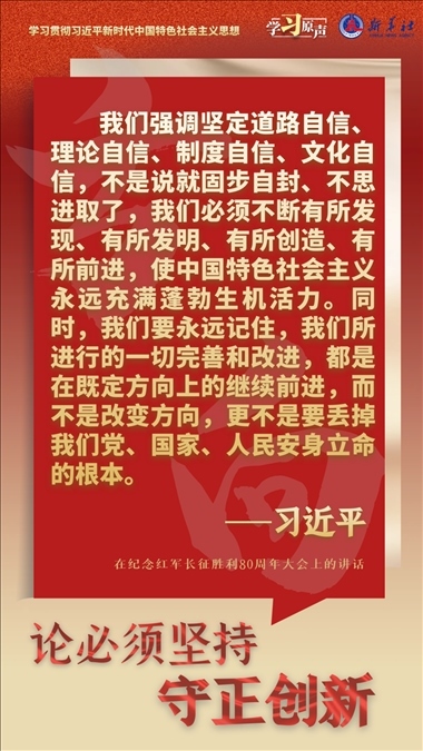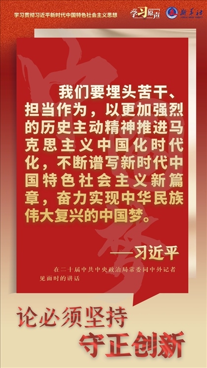 我們從事的是前無(wú)古人的偉大事業(yè),守正才能不迷失方向、不犯顛覆性錯(cuò)誤,創(chuàng)新才能把握時(shí)代、引領(lǐng)時(shí)代。我們要以科學(xué)的態(tài)度對(duì)待科學(xué)、以真理的精神追求真理,堅(jiān)持馬克思主義基本原理不動(dòng)搖,堅(jiān)持黨的全面領(lǐng)導(dǎo)不動(dòng)搖,堅(jiān)持中國(guó)特色社會(huì)主義不動(dòng)搖,緊跟時(shí)代步伐,順應(yīng)實(shí)踐發(fā)展,以滿腔熱忱對(duì)待一切新生事物,不斷拓展認(rèn)識(shí)的廣度和深度,敢于說前人沒有說過的新話,敢于干前人沒有干過的事情,以新的理論指導(dǎo)新的實(shí)踐。