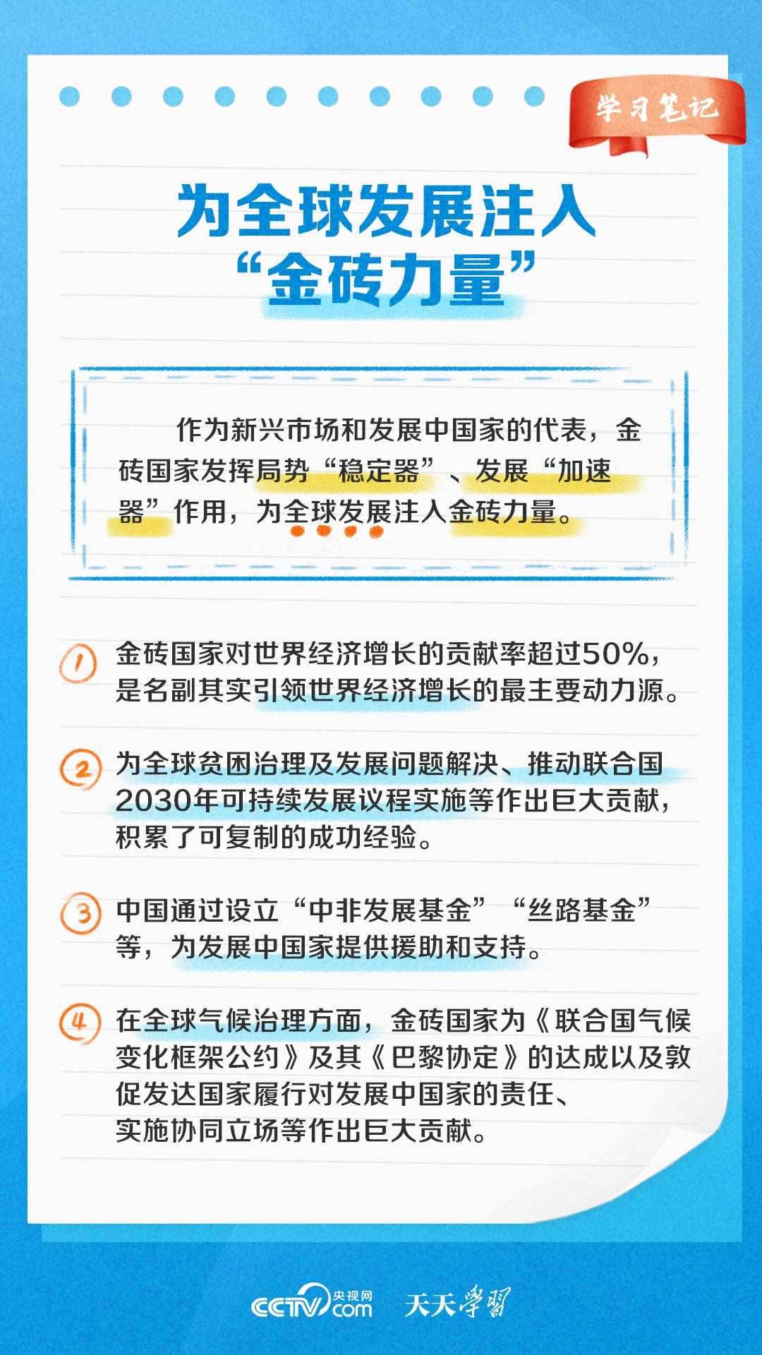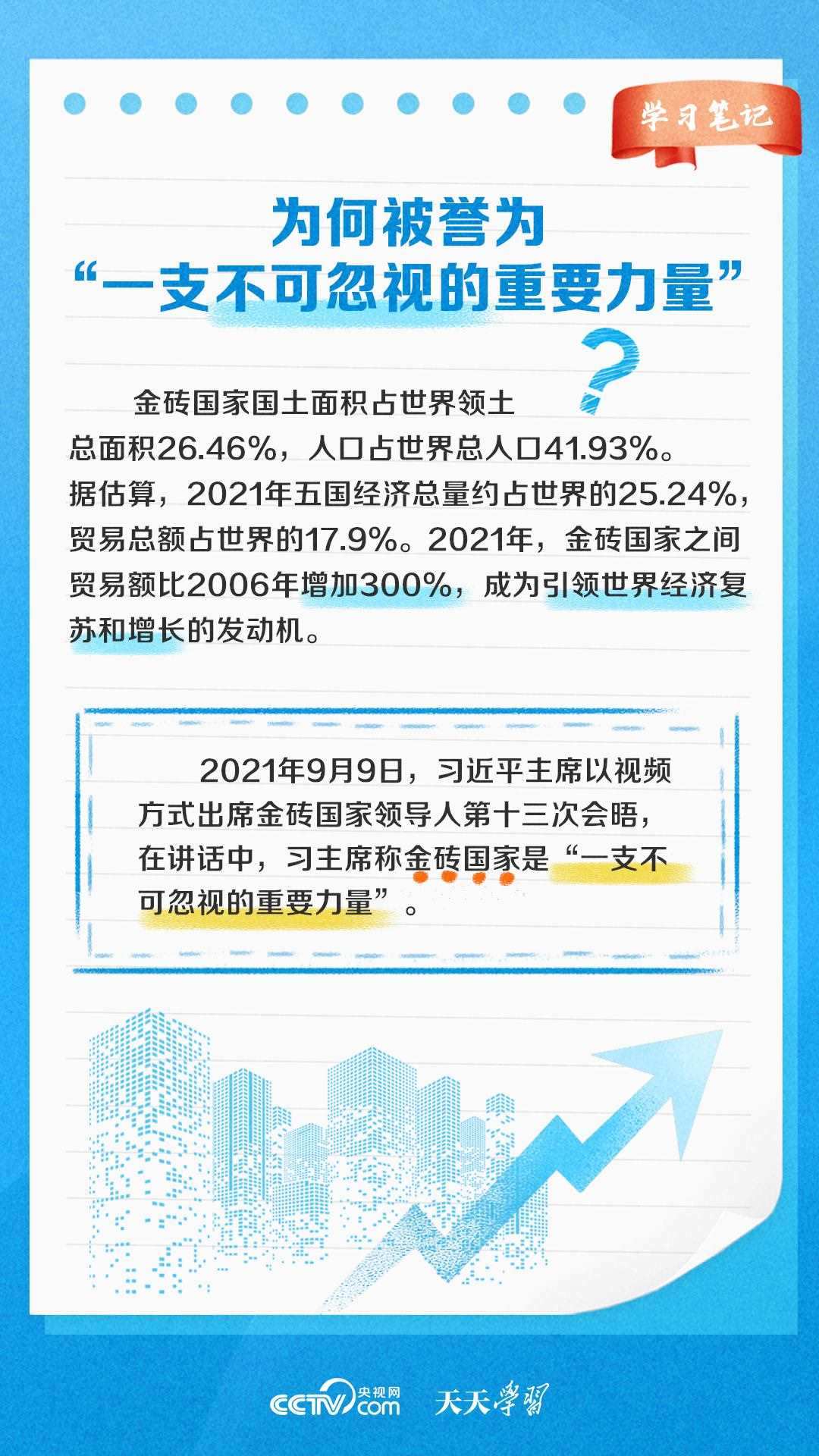 自金磚國(guó)家合作機(jī)制建立以來,金磚國(guó)家合作不斷走深走實(shí),成為帶動(dòng)世界經(jīng)濟(jì)增長(zhǎng)、完善全球經(jīng)濟(jì)治理、推動(dòng)國(guó)際關(guān)系民主化的重要力量之一?!短焯鞂W(xué)習(xí)》特推出《學(xué)習(xí)筆記》,與您一起了解金磚國(guó)家合作機(jī)制緣何擁有強(qiáng)勁生命力。