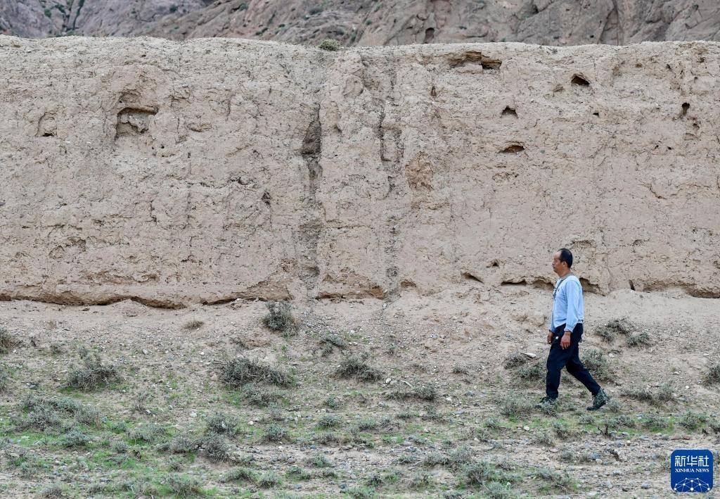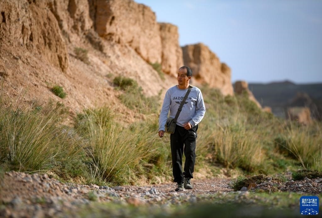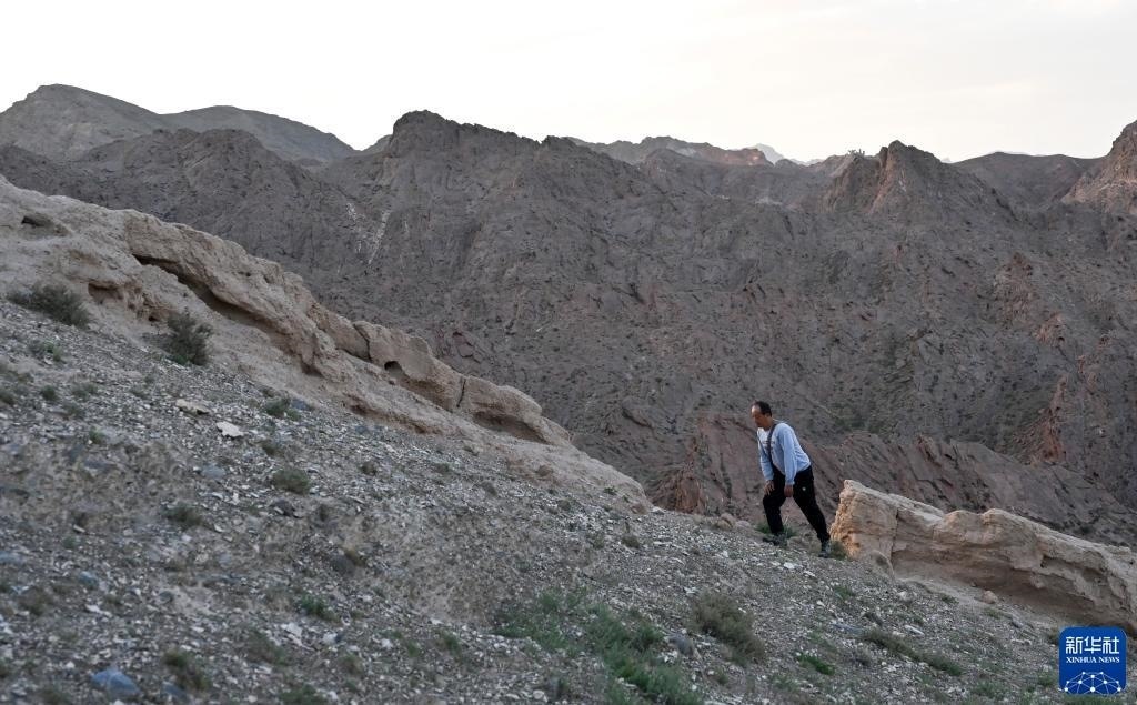 8月20日,董海寧徒步巡查賀蘭山沿線的明長(zhǎng)城永寧段。新華社記者 連振 攝