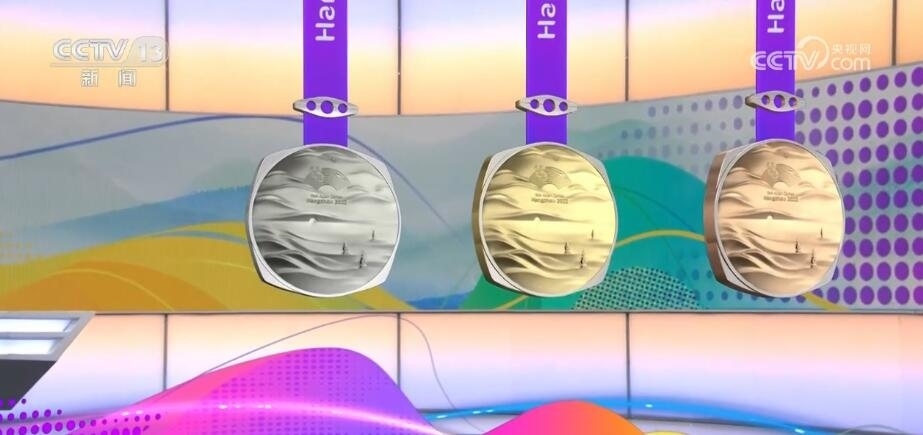 杭州亞運會獎牌名為“湖山”。“湖山”將良渚文化的方形玉琮和圓形的獎?wù)氯跒橐惑w,正面用凸出的線條勾勒出“三面云山一面城”的杭城畫卷,湖水漣漪,山巒起伏。獎牌上方的束扣是一個帶有倒影的三孔橋,設(shè)計取自京杭大運河最南端的拱宸橋。一塊獎牌,將杭州的三處世界文化遺產(chǎn):良渚、西湖、大運河都融入其中。