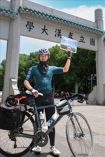 2023年是云南昆明小伙文迪與武漢大學(xué)相遇的年份,2023公里是文迪的家鄉(xiāng)到武大的距離?!斑@是我一直以來(lái)的夢(mèng)想”文迪說(shuō),在初中時(shí),他讀到大學(xué)新生騎行報(bào)到的故事,從此下定決心,未來(lái)考上大學(xué)后“考到哪里,就騎到哪里”。今年高考,文迪被武大資源與環(huán)境科學(xué)學(xué)院空間信息與國(guó)土資源專業(yè)錄取,從云貴高原到荊楚大地,文迪一路騎行,來(lái)了一場(chǎng)特別的新生報(bào)到之旅!8月21日,這場(chǎng)既是旅游又是“流浪”的旅途終于結(jié)束,文迪也來(lái)到了珞珈山下,即將在這座最美大學(xué)校園里開(kāi)始四年的大學(xué)生活。